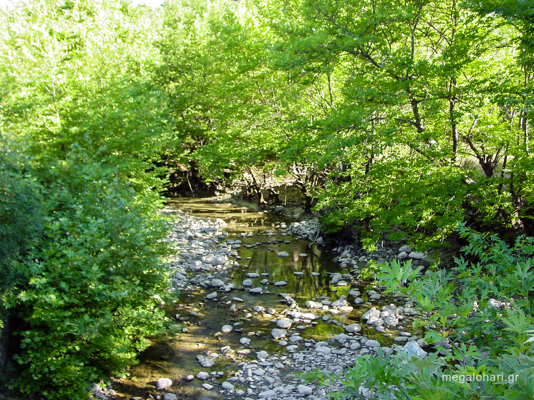 Στη Μεγαλόχαρη, οι πλάτανοι συνδέονται άμεσα με το νερό, το τοπίο και τις μνήμες της καθημερινής ζωής γύρω από τα ρέματα.