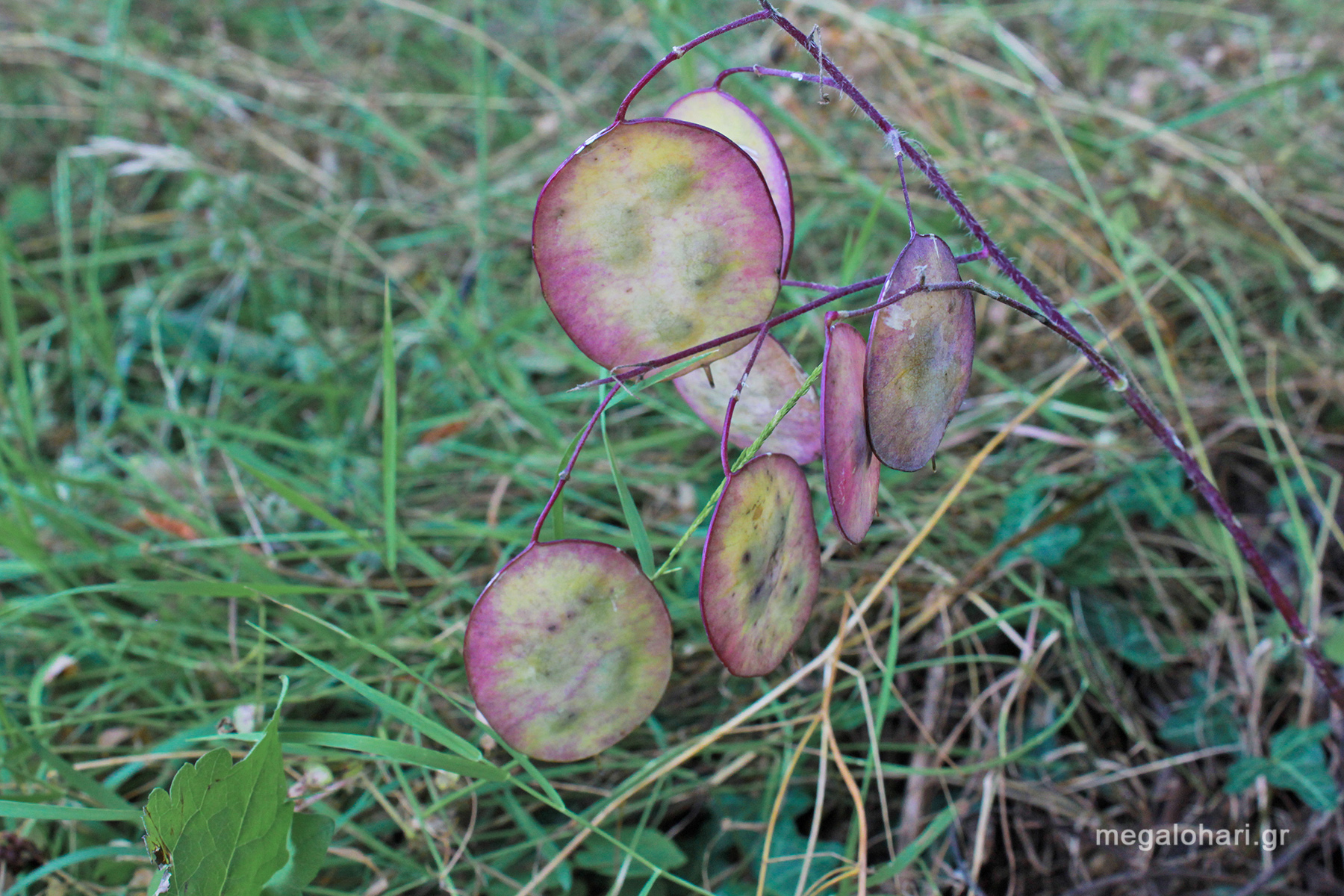 Μετά την άνθιση σχηματίζει τους χαρακτηριστικούς, επίπεδους και στρογγυλούς καρπούς του, που μοιάζουν με μικρά νομίσματα, με το ασημί και υπόλευκο, σχεδόν διάφανο χρώμα τους.